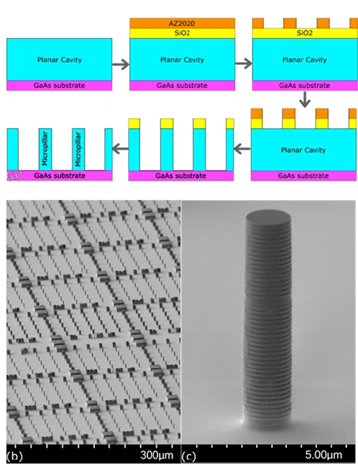 We are working as part of the UK National Hub in Quantum Computing and Simulation to refine these sources for optical quantum information processing. Semiconductor material is sourced from the National Epitaxy Facility in Sheffield, etched in Cardiff’s cleanroom, and assessed in our labs. Collaborations with other groups drive this project, most strongly with the National Physical Laboratory who are interested in redefining the SI unit of light using these exceptional photon sources.